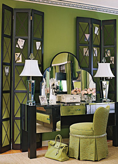 想想上世紀(jì)三十年代的女星們坐在化妝鏡前欣賞著自己的美貌,我們最容易效仿的就是將那張三面化妝鏡搬回家,在上面擺上你的珠寶盒、瓶瓶罐罐,你會(huì)找到做女人的幸福。