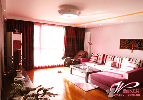 客廳里,女主人特別挑選了粉紅色的沙發(fā),配以同色調(diào)彩條靠包,她說,那是春韻的寫意畫片,在跳躍艷麗的粉暈中,春天永遠(yuǎn)伴在家人的身邊,那樣輕盈,那樣?jì)趁摹?/P>