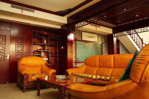 深色家具往往使人感覺(jué)到壓抑,可是這款深色的紅木家具與青色的瓷磚搭配卻讓人眼前一亮:青色的瓷磚在墻面和地面起到了不同的裝飾效果,置身其中,總有一種揮毫潑墨、飲酒作詩(shī)的雅興。