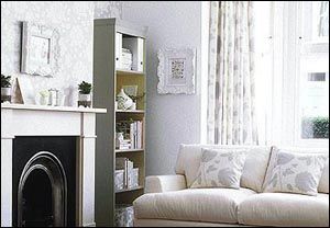 白色的墻面色彩清淡、簡潔,對整體橙黃色調(diào)起到很好的中和作用,純木地板讓現(xiàn)代、輕盈的房間多了幾分厚重。白底橙、黑、灰三色花紋的窗簾在白色背景下顯得別有風(fēng)味?;野咨妓嚿嘲l(fā)搭配數(shù)個橙色和棕色靠墊,宜家的長方小桌上是橙色石質(zhì)花瓶、灰缸形花瓶和船形果盤,造型別致。壁爐架上畫框內(nèi)依然是橙色圖畫,和香蕉形黃色花瓶。墻角的架子上隨意擺放著橙、白、青灰色花瓶和小相框、飾物等。整體空間雖然有大幅的白,但橙色始終都作為主色調(diào)存。