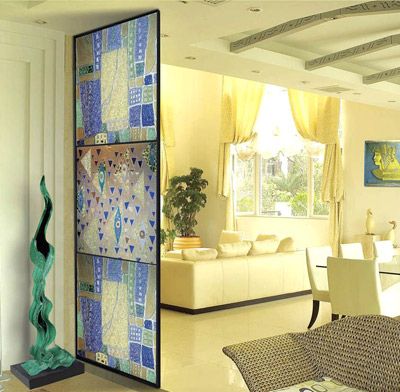 中國的傳統(tǒng)大宅院入門之處均設(shè)有大型玄關(guān),而現(xiàn)代都市的住宅普遍面積狹窄,若再設(shè)置傳統(tǒng)的大型玄關(guān),則明顯會感覺空間局促,難以騰挪。所以折衷的辦法是用玻璃屏風(fēng)來作間隔,這樣既可防止外氣從大門直沖入客廳,同時也可令狹窄的玄關(guān)不顯得太逼仄。