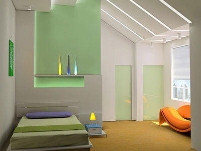 子女房與主臥最大的區(qū)別就在于設(shè)計(jì)上要保持相當(dāng)程度的靈活性。子女房只要在區(qū)域上為他們做一個(gè)大體的界定,分出大致的休息區(qū)、閱讀區(qū)及衣物儲(chǔ)藏區(qū)就足夠了。在室內(nèi)色彩上吸引孩子是設(shè)計(jì)子女房的要點(diǎn)。兒童房間容易弄臟,裝飾時(shí)應(yīng)采用可以清洗及更換的材料,最適合裝飾兒童房間的材料是防水漆和塑料板,而高級(jí)壁紙及薄木板等不宜使用。