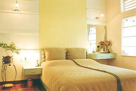 香檳色是柔軟和舒適的色彩,月季花圖案采用明線壓花和暗線壓花兩種加工手法,讓花朵的圖案呈現(xiàn)精妙的變化,搭配明黃色墻壁和白色木質(zhì)床,描繪出舒適富裕的居室表情。