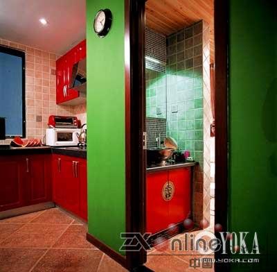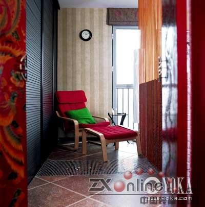 身為設計師的郭筱玉認為,自己的家是最佳的實驗室,客戶那里不能做的,自己都可以嘗試,想要家具有視覺有沖擊力,又不想使用慣常的單色重涂,不如就來個徹底的沖撞——紅與綠,大俗的色彩,卻又是最民族的色彩,包含了太多的色彩語匯與寓意,沒有比它們更適合的色彩了。一路傾瀉下來,處處濃墨重彩。門廊、客廳、臥室,甚至連衛(wèi)生間都不放過,紅色依綠色而明媚,綠色依紅色而濃郁,到處閃亮青春的熾熱與無忌。沒有摻雜任何的灰調,是最徹底的紅與綠的色彩搭配,但設計師熟稔地把握著色塊的體量關系,不完全放縱,才能完全掌控空間對于自己的服務。這是一份“危險”的色彩試卷,郭筱玉卻答得精彩。