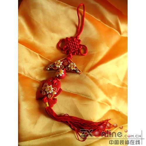 人們總用魚來(lái)預(yù)示“吉慶有余”的未來(lái),選擇一串紅紅火火的雙魚掛飾懸掛在床頭或案角,精致的鯉魚扣和亮閃閃的金絲線上原本就很漂亮的中國(guó)結(jié)更加增添喜慶和熱鬧。如果你有興趣,不妨找來(lái)一串金色或紅色的同心結(jié),用線把它們固定在門楣或門框上,這樣會(huì)給每一位進(jìn)入房間的客人帶來(lái)不少新春的喜氣。而在魚狀的中國(guó)結(jié)下的那一方空間,常因?yàn)檫@零星的一點(diǎn)“魚紅”而傳遞出意想不到的好心情。