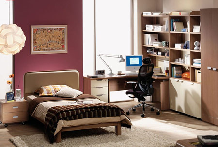 臥室中最主要的功能區(qū)域是睡眠區(qū)。這個區(qū)域的主要家具是床和床頭柜,并且要設(shè)置照明良好的床頭局部照明光源, 使之能滿足床頭閱讀的需要。睡床的擺放要講求合理性和科學(xué)性。一般床的擺放為:單人床式臥室、雙人床式臥室 和對床臥室三種形態(tài)。床的兩面常設(shè)有床頭柜和床頭幾等,至于用哪種模式比較理想,可根據(jù)夫妻雙方的身心需要和實際環(huán)境來決定。