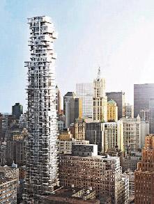 這是赫爾佐格和德默龍首次設計高層建筑,設計圖定于15日公布。新建筑每層由145套大小不一、角度不同的房間交錯構(gòu)成,每層看似各不相同。 赫爾佐格和德默龍對自己的“空中堆疊房”設計頗為得意。***13日援引他們的話報道,新建筑“像個有花邊、雜亂的魔方”,徹底改變美國傳統(tǒng)摩天大樓的建筑風格。它隱藏傳統(tǒng)建筑外部框架,所以看似幾乎全用玻璃壘成,人們從不同角度可以觀賞到不同的景觀。赫爾佐格說,設計方案以新方式使用“雕塑和材料,令它們重現(xiàn)生機”。