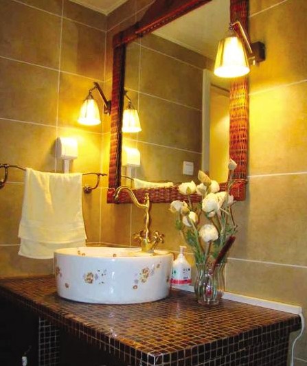 業(yè)主自薦:浴室間是最能體現(xiàn)主人品味的地方。所以裝修之前,我在網(wǎng)上翻閱了大量的浴室間圖片,確定了自己想要的風(fēng)格。墻面和地面,采用仿古磚,這樣整體的氛圍一下子就營(yíng)造出來(lái)了。但在接下的選材中,也是破費(fèi)周折。為了這個(gè)面盆,我?guī)缀蹀D(zhuǎn)遍了西安各大建材市場(chǎng),比較了多次,最終淘到滿意的樣式;在鏡子四周,我又刻意裝飾一番,讓此處徹底“美麗”起來(lái)?;ㄙM(fèi)整體下來(lái)不到2萬(wàn),我覺(jué)得還是蠻實(shí)惠的。這些材料,看著都挺有檔次,都是在搞活動(dòng)期間淘來(lái)的。雖然先生對(duì)裝修效果很是滿意,對(duì)我的執(zhí)著勁尤其肯定。
