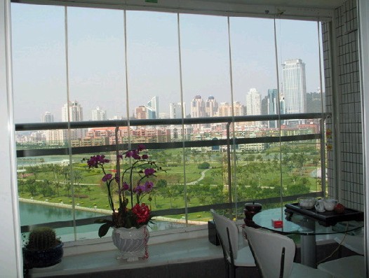 無框陽(yáng)臺(tái)窗使陽(yáng)臺(tái)具有很強(qiáng)的實(shí)用性,它能非常有效地?fù)躏L(fēng)遮雨,隔斷塵埃和噪音;合理的結(jié)構(gòu)使每扇窗都能夠向內(nèi)開啟,不必把身體探出外面擦窗,清洗十分安全、簡(jiǎn)單。