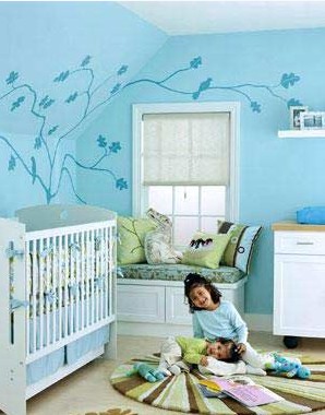 嬰兒房是許多父母給新生孩的圣神的庇護所,溫柔的色調(diào),鮮明的輪廓,小地毯,柔軟的枕頭,彩色的小書,和墻上伸展開的樹枝,一切都是為這個小生命精心準備的,自然是這里的最佳的主題。