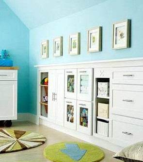 在以免不常用的墻上,裝上這樣的櫥柜,不僅節(jié)約空間,而且可以提供大量的儲存空間,可以收納孩子的玩具、衣服、鞋子和其它東西。可以買幾塊小匹配的小地毯,比買一大塊地毯更加的劃算,也更實用,還可以給孩子創(chuàng)造許多不同的小玩耍區(qū)。