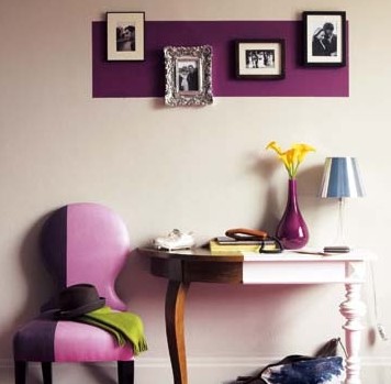對于原本是米白色和木色系為主的玄關(guān)處,可以在墻面、家具和地面上直接加入漿果色系的顏色,就能馬上獲得全新視覺效果。邊桌上紫色的花瓶必不可少,家居色彩運用的最高境界就是在所有擺設(shè)之間找到平衡。