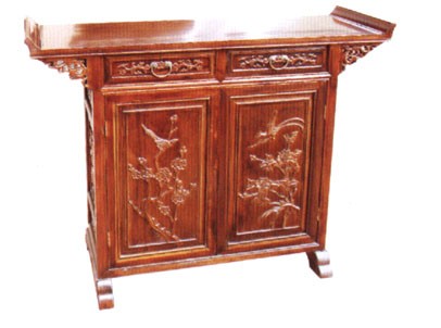 明清家具分為京作、蘇作和廣作。京作指北京地區(qū)制作的家具,以紫檀、黃花梨和紅木等硬木家具為主,形成了豪華氣派的特點。蘇作指蘇州地區(qū)制作的家具,歷史悠久,以蘇州為中心的江南地區(qū),是明式家具的發(fā)源地,尤以明式黃花梨家具馳名。它的特點是造型輕巧雅麗,裝飾常用小面積的浮雕、線刻、嵌木、嵌石等手法,喜用草龍、方花紋、靈芝紋、色草紋等圖案。廣作指廣州地區(qū)制作的家具,其大發(fā)展是在清中期以后。廣作家具的特點是,用料粗壯,造型厚重