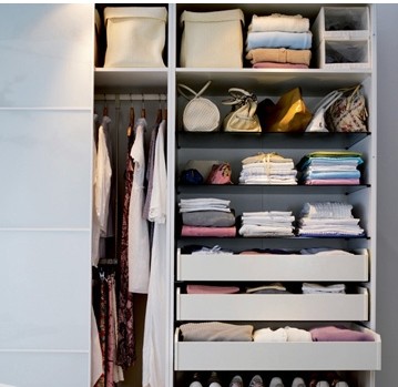 對(duì)你的衣服做量化總結(jié)。經(jīng)常穿的衣服共有多少件?帽子、背包、鞋子的數(shù)目最好也做一個(gè)統(tǒng)計(jì)。哪些衣服需要懸掛,哪些只要疊放就可以了。哪些衣服常年不穿卻又舍不得丟棄,需要壓箱存放。