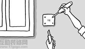 在處理電燈開關(guān)與插座周邊位置時(shí),先關(guān)掉電源,以正常方式貼平壁紙,覆蓋過這些地方,然后再將蓋過開關(guān)與插座部位的壁紙自中央向四個(gè)角落切開。接著松開螺絲,以切開部位的紙緣折入蓋內(nèi),再裁掉多余的部分即可。