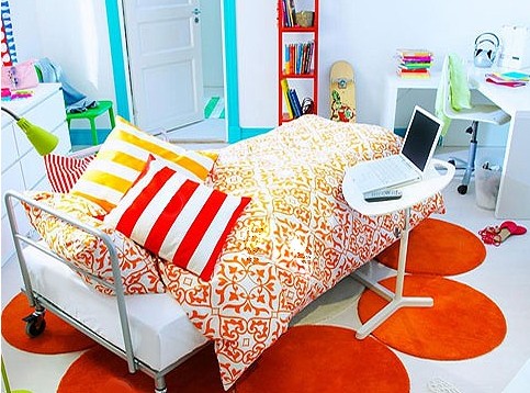 無處不在的收納 + 紅黃藍(lán)綠的鮮艷裝飾