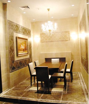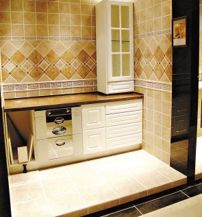 這款由瓷磚設(shè)計(jì)的空間,讓人感覺到充滿歐陸古典味道。如果仔細(xì)觀察,你可以看到顏色過渡很自然,磚面起伏,構(gòu)造也比較出色。
