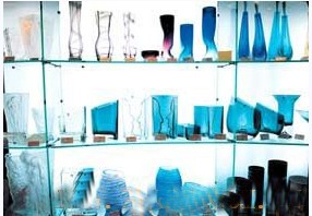 彩晶玻璃質(zhì)地堅(jiān)硬,光澤亮麗。若在彩色光的照耀下,更加絢麗多彩,金壁輝煌。多用于客廳的空間裝飾。