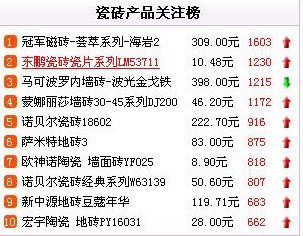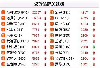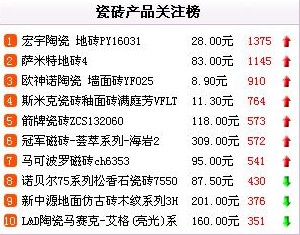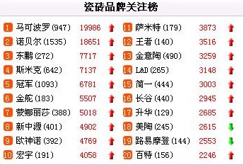 前十位品牌排名穩(wěn)定 東南產(chǎn)地瓷磚受關(guān)注