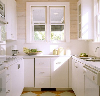 4、廚房里的矮柜最好做成抽屜:推拉式這樣方便取放,視覺也較好。而吊柜一般做成30到4Ocm寬的多層格子,柜門做成對開,或者折疊拉門形式。