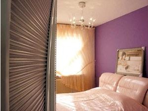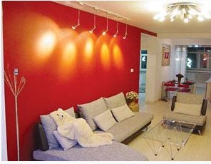 紅色紫色的效果不錯(cuò),不過(guò)在后期搭配上還需要做些工作:長(zhǎng)時(shí)間面對(duì)紅色容易產(chǎn)生視覺(jué)疲勞,所以我家客廳的紅墻是在客廳沙發(fā)的后面;廚房是開放式的,跟餐廳、客廳成一直線,為了達(dá)到統(tǒng)一,櫥柜、餐桌也用了紅色;玄關(guān),因?yàn)榭臻g有限,沒(méi)用屏風(fēng),而是用了一串一串的水晶球,燈光照射下,有一種夢(mèng)幻的感覺(jué)。陽(yáng)臺(tái)是我比較喜歡的,有落地的一整塊弧形玻璃窗,采光非常好——在北方寒冷的冬天,陽(yáng)光是非常重要的——我們把它改造成了一個(gè)地面是玻璃臺(tái)階的陽(yáng)光房,玻璃上鋪一塊羊毛地毯,再放幾個(gè)靠背枕,就可以在那里舒舒服服地曬太陽(yáng)看書了;臥室用了紫色,代表著神秘、浪漫,另一間臥室現(xiàn)在身兼數(shù)職,即是更衣室,又是書房,還是客房。