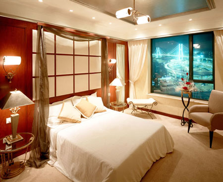 裝修熱,也把本來功能簡單的臥室熱得'面目全非',五花八門、不倫不類的臥室常讓人以為走錯了地方。比如,有的人為了顯示富貴,將臥室的墻面貼滿了名貴木材飾面板,頂棚上安裝豪華純銅云石或水晶吊燈,更有甚者,將博古架、拱門等移植其中......凡此種種,實難讓人茍同。試想。如此豪華且缺少生活氣息的臥室,能讓你'美好明天從今晚開始'嗎?