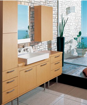 隨著人們對衛(wèi)浴間的重視,各式美觀精巧的浴室柜吸引著消費者的視線。它分門別類的收納把衛(wèi)浴間處理得井然有序,越來越多的色彩和款式使其成為衛(wèi)浴間的視覺亮點。