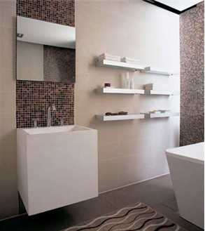 衛(wèi)生間瓷磚有腰線和花磚的要事先想好,將來(lái)其他東西裝好了不要擋住或沖突。如果是在尺寸沒(méi)量好的情況下鋪裝的,裝臺(tái)盆時(shí)才發(fā)現(xiàn)腰線貼低了,只好把臺(tái)盆的腿鋸短。瓷磚添縫劑用色粉配顏色的話最好先調(diào)試一點(diǎn)看一下,再?zèng)Q定用量,否則不是太淺就是太深。