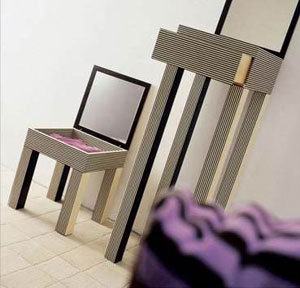 為了迎合人們希望盡可能充分利用空間的需要, 現(xiàn)在很多浴室家具不僅僅具有一項功能,例如圖中所示的坐椅,表面有可以打開的蓋子,蓋子一面是鏡子,可用于化妝,而椅坐里面還可以放一些零碎物品。高一些的帶抽屜的柜子也是如此。