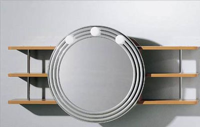 掛在墻上的家具最理想的狀態(tài)是具有多種功能,單純在洗面盆前的墻上安裝一面鏡子是對空間的浪費。如果選擇與鏡子相結(jié)合的擱架,既可以放一些零碎的洗浴用品,又能對鏡理妝容。在功能方面一舉兩得,但占用的卻只是一處空間面積,取得了“1+1=1”的效果。