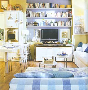 緊湊的家具擺設(shè)、可伸縮家具的選擇、功能區(qū)域的劃分,讓小屋顯得井然有序。與心愛的人共住如此精致的小屋,相信生活早已變成無形的樂趣。而聰明的讀者,也將通過這間小屋學(xué)到許多節(jié)省空間、擴大空間使用功能的有效辦法。