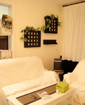 把它貼到勒沙發(fā)的那面墻上勒,再掛上之前買滴葉子條,準備以后會多買幾盆凈化空氣滴真植物放在家里!