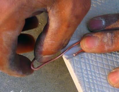 2.嵌入銅絲:這下你該明白為什么要開(kāi)槽了吧,它就是容納這根銅絲的,用銅線(xiàn)彎成小S鉤放入槽內(nèi)。