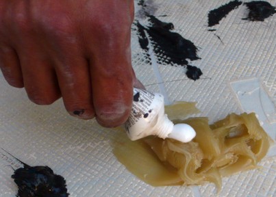 4.瓷磚涂膠:同時(shí)在瓷磚后背點(diǎn)注大理石膠與結(jié)構(gòu)膠(大理石膠中摻適量凝固劑),畢竟光靠銅絲來(lái)固定有點(diǎn)懸。