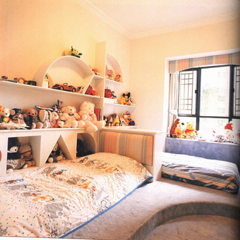 把孩子的空間設(shè)計(jì)得五彩繽紛,不僅適合兒童天真的心理,而且鮮艷的色彩在其中會洋溢起希望與生機(jī)。對于性格軟弱過于內(nèi)向的孩子,宜采用對比強(qiáng)烈的顏色,刺激神經(jīng)的發(fā)育。而對于性格太暴躁的兒童,淡雅的顏色,則有助于塑造健康的心態(tài)。