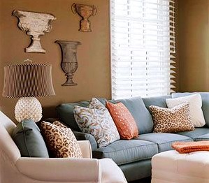 在流行裝飾榜上,藍(lán)色和褐色總是成對的出現(xiàn),但你一定要找到適合自己口味的搭配。如果你喜歡平淡一點(diǎn)的顏色,那么可以嘗試奶油咖啡色和法式藍(lán)色,同時搭配傳統(tǒng)一點(diǎn)的家具,比如背景墻和靠墊一類的東西,這些便宜的東西可以輕易地變更與裝飾的趨勢。
