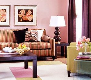 粉色給人的感覺是太**,不容易搭配。其實(shí)深棕色的家具可以很好的融入其中,不過家具的線條一定要簡潔,否則會讓客廳顯得太過于復(fù)雜。
