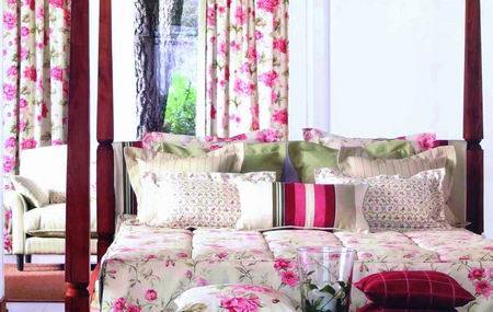 如果客廳家具是以板式家具為主,宜選用質(zhì)地輕薄、色澤亮麗明快的印花布窗簾。如果你喜歡春天嬉戲于百花中的感覺(jué),不妨試一試今年比較流行的ART DECO 裝飾風(fēng)格,選用一款色彩淡雅的團(tuán)花窗簾來(lái)迎接春天明媚的陽(yáng)光。