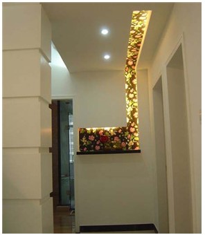 第四、采光和照明:門廳一般沒有窗,采光普遍不好,要利用燈光來補充。門廳處一般要安放一盞主燈,在根據(jù)自身情況配合相應的筒燈、壁燈以及裝飾用的射燈等,共同營造一個溫暖、明亮的空間,采用的燈光應亮一些,以免給人晦暗、陰沉的感覺。