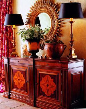 并不是簡單的對傳統(tǒng)文化的復(fù)古,而是在現(xiàn)代裝修風(fēng)格中融入古典元素,尤其流行將傳統(tǒng)家具原始功能進(jìn)行演變,比如把雙人床榻用來做沙發(fā)等;有的家具看似是普通的現(xiàn)代風(fēng)格,但由于在板材上包裹了紋理畢現(xiàn)的皮革,而彌漫著雍容華貴的古典氣息。局部夸張的造型、仿鱷魚皮等頹廢奢華的材質(zhì)和濃烈的純金屬色以及對抽象化幾何線條裝飾的偏愛,都讓這種’不倫’的古典風(fēng)潮再度溫暖我們的居室。