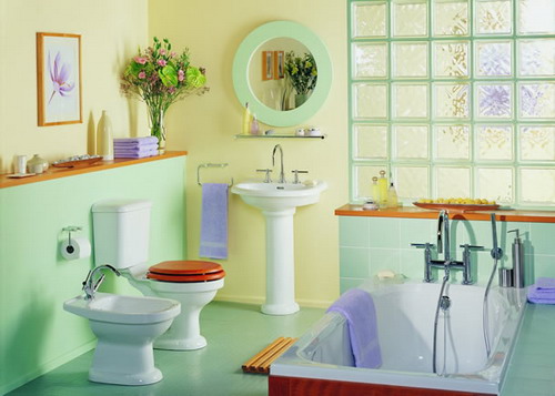 塑料是衛(wèi)生間里最受歡迎的材料,色彩艷麗且不容易受到潮濕空氣的影響,清潔方便。這一組綠色的器皿包括紙巾盒、肥皂盒、廢物盒,還有一個裝雜物的小托盤。在不同風(fēng)格的衛(wèi)生間搭配不同的色彩,也是一種流行。