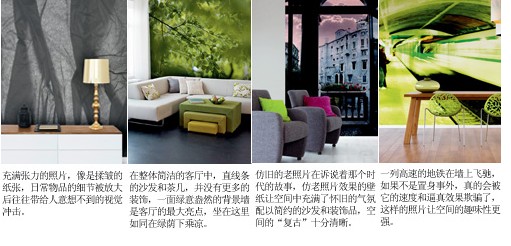 隨著各種“模仿”秀的不斷升級(jí),壁紙也緊跟時(shí)尚的腳步,仿照片效果的壁紙帶來(lái)了強(qiáng)烈的視覺(jué)沖擊力,把空間的裝飾效果推上頂點(diǎn)。