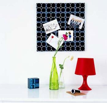 自己動(dòng)手DIY一個(gè)畫框,把平時(shí)收集來的有趣賀卡,錯(cuò)落地插在上面,而黑色圓底的背景板可以更好地襯托出賀卡的裝飾效果。