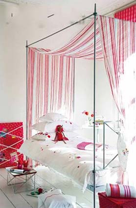 輕薄的一襲薄紗條紋床幔,于初夏的效果是顯而易見,不僅為可愛的兒童房加分,也創(chuàng)造出輕盈甜美的空間視覺。