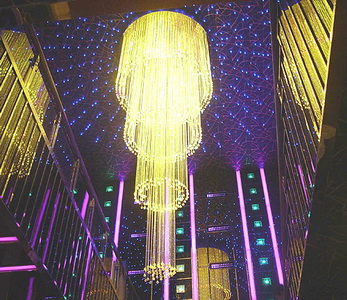 客廳是待人接客的場所,要求營造一種溫暖熱烈的氛圍,因此客廳以選用莊重、明亮的吊燈或吸頂燈為宜。如果房間較高,宜用白熾吊燈或一個較大的圓形吊燈,這樣可使客廳顯得通透,但不宜用全部向下配光的吊燈,而應使上部空間也有一定的亮度,以縮小上下空間亮度差別。燈具的造型與色彩應與客廳的家具擺設相協調。
