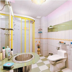 衛(wèi)生間瓷磚有腰線和花磚的要事先規(guī)劃,將來其他東西裝好了不要擋住造成視覺或使用上的沖突。如果是在尺寸沒量好的情況下鋪裝的,裝臺盆時才發(fā)現(xiàn)腰線貼低了,只好把臺盆的腿鋸短,就麻煩了。