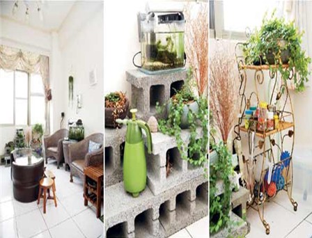 2.客廳養(yǎng)了兩缸小魚,把空心磚疊起來放在墻邊當架子,中間的空格還可以收納物品。