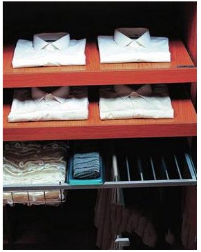 襯板。將男士的襯衣放在帶滑軌的推拉襯板中,搭配時一目了然,清晰方便。