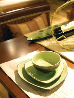 這些餐具妙在一個“淡”字。春天的綠不是濃綠,而是淡綠,不像夏天那樣熱烈奔放,而是含蓄雋永,是萬物始發(fā)生的綠,是嫩嫩的,不敢輕易觸碰的綠。以此觀之,這款餐具得春綠之三昧矣。