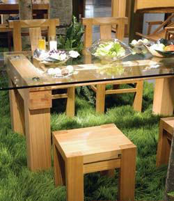 圖中這款餐桌椅由實木制成,色彩也沒有用明黃或者綠色等富有跳躍感的顏色,但自有一種來自森林原汁原味的感覺。